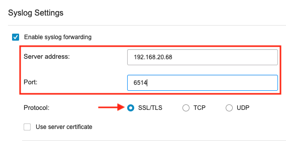4. Under Syslog Settings, configure the following settings: